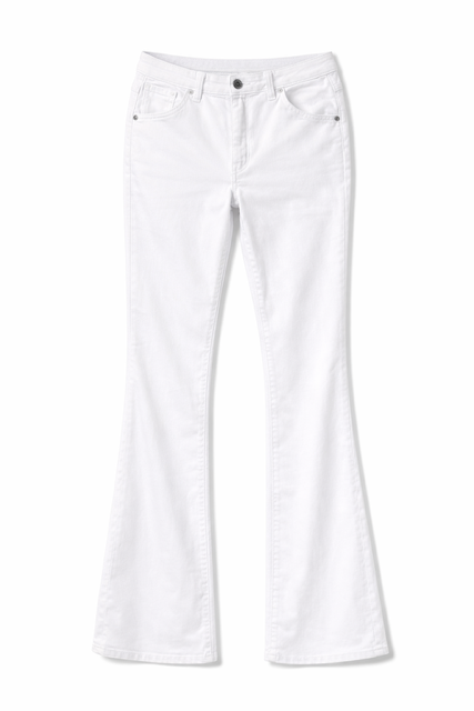 Linea pulita e vestibilità slanciata per questo pantalone in cotone leggermente elasticizzato, perfetto per valorizzare la silhouette con comfort e stile. Il taglio flare accompagna la figura aderendo sulla parte alta e aprendosi delicatamente sul fondo, creando un effetto elegante e contemporaneo.